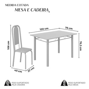 Este conjunto de mesa retangular e 4 cadeiras oferece estilo e praticidade. Com estrutura tubular em aço para estabilidade, o tampo em pedra granito adiciona sofisticação e resistência a riscos e manchas. As cadeiras combinam harmoniosamente com a mesa, garantindo conforto com estofamento. Ideal para diversos espaços, é perfeito para receber convidados ou desfrutar de refeições em família, criando um ambiente acolhedor e elegante. Medida da Mesa (A x L x P): 76,3 cm x 75 cm x 120 cm Peso da Mesa: 57,63 kg Mesa suporta até: 10 kg Acabamento da Cadeira/Banco: Pintura Texturizada Acabamento da Mesa: Polido Ambiente Principal: Sala de Jantar Cadeira/Banco estofada: Somente Assento Estofado Cadeira/Banco suporta até: 120 kg Complexidade da Montagem: Baixa: pode ser montado por uma pessoa sozinha Cor: Botanic Bege / Mart Prata Cor do Produto: Botanic Bege / Mart Prata Escala de Brilho: Semi-Brilho Espessura do Tampo: 20 mm Estrutura do Assento: Assento em MDP de 15mm c/ couríssimo. Itens Inclusos: 1 Mesa, 4 Cadeiras, Manual de Montagem e Ferragens. Manual de Montagem e Instalação: https://product-hub-prd.madeiramadeira.com.br/917866/documents/ed8db822-b1bf-4e1a-bbdf-6a6e5d15ba2b2040633524617181306017506.pdf Material da Base da Mesa: Aço Material da Estrutura da Cadeira: Aço Material do Tampo: Granito Medida da Cadeira/Banco (A x L x P): 108 cm x 37 cm x 40 cm Medida do Tampo (L x C x E): 75 cm x 120 cm x 2,0 cm Necessita Montagem: Sim Origem do Produto: Nacional Peso da Cadeira/Banco: 3,82 kg Possui Apoio Para os Pés: Não Quantidade de Lugares: 04 Recomendações de Uso, Manutenção e Limpeza: Usar um pano de tecido macio e seco, evitar detergentes, alvejantes e produtos químicos de limpeza; no tampo usar tecido macio levemente umedecido. Sistema de Montagem: Parafusos