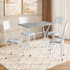 Conjunto De Mesa Sala De Jantar Bruna 1m Com 4 Cadeiras Granito Tubular Artefamol Branco Flor