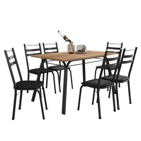 Conjunto De Mesa Sala De Jantar Com 6 Cadeiras Tubular Tampo Bp Madeirado Retangular 1,36m Preto