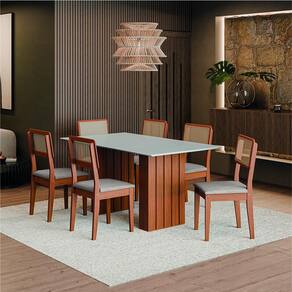 O conjunto de mesa 1,60m com 6 cadeiras Santiago é a escolha perfeita para cozinhas e salas de jantar que buscam conforto e estilo. A mesa possui tampo de vidro temperado colado, e conta com base dupla ripada, que traz um visual moderno e sofisticado ao ambiente. As cadeiras oferecem assento acolchoado e encosto em tela, proporcionando conforto e estilo. Feito com materiais resistentes e fáceis de limpar, este conjunto é perfeito para quem busca estilo, conforto e praticidade em um único produto.
