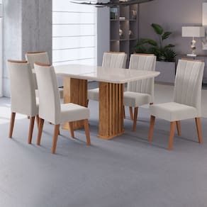 MODELO: Conjunto de Mesa Sala de Jantar Tampo com Vidro Mond 1,60m 6 Cadeiras Sofia Veludo