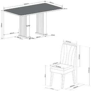 DIFERENCIAL: Tampo da mesa com vidro e bordas arredondadas, base ripada sofistica. Cadeira com base em madeira maciça encosto acolchoado, e espalda, revestimento em tecido veludo