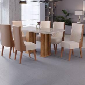 MODELO: Conjunto de Mesa Sala de Jantar Tampo com Vidro Mond 1,60m 6 Cadeiras Tifany