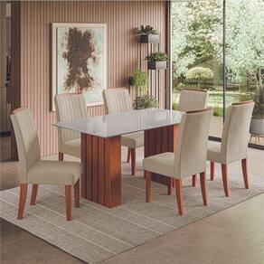 MODELO: Conjunto de Mesa Sala de Jantar Ripada Tampo com Vidro Santiago 1,60m 6 Cadeiras Grécia