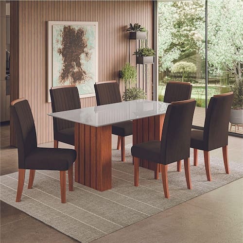 Modelo: Conjunto de Mesa Sala de Jantar Ripada Tampo com Vidro Santiago 1,60m 6 Cadeiras Grécia