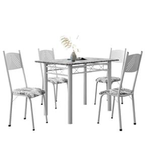 Conjunto De Mesa Sala De Jantar Sara Com 4 Cadeiras Tubular Granito 1,20m Artefamol Branco / Floral
