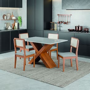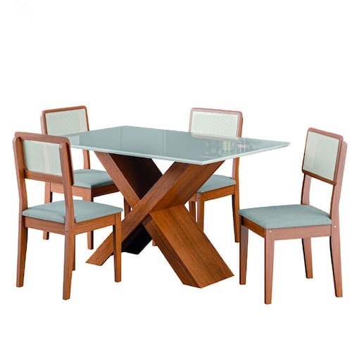MODELO: Conjunto de Mesa Sala de Jantar Tampo com Vidro 1,36m Grécia 4 Cadeiras Santiago