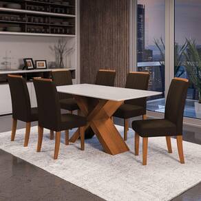 Conjunto De Mesa Sala De Jantar Tampo Com Vidro 1,60m 6 Cadeiras Grécia Dobuê Madeirado/chocolate