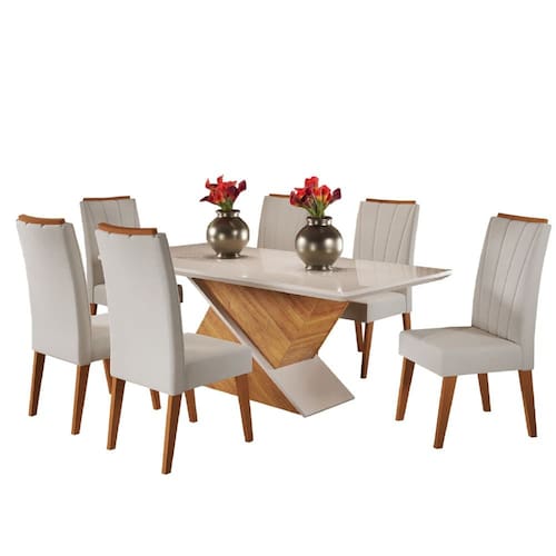 MODELO: Conjunto de Mesa Sala de Jantar Tampo com Vidro Engel 1,80m 6 Cadeiras Sofia