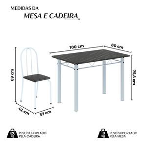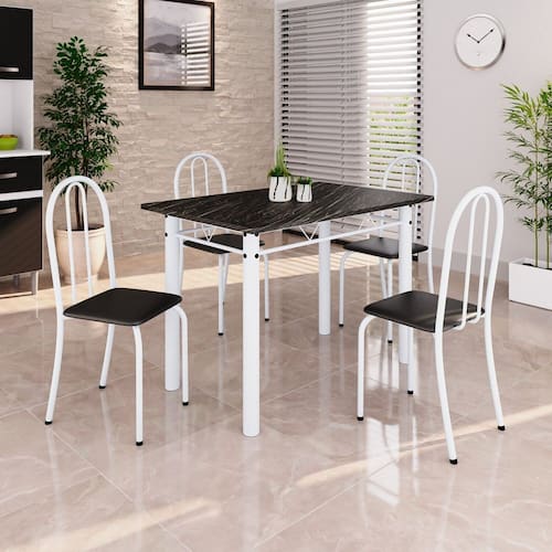 Quer deixar sua casa completa e prática? Uma dica bacana de como transformar o seu lar, deixando-o mais receptivo e bonito? Então você precisa de móveis indispensáveis para deixar seu lar muito mais aconchegante, receptivo e sempre disponível para receber a visita de amigos, familiares e convidados. Você vai se apaixonar por este incrível e moderno Conjunto de Mesa com 4 Cadeiras ANE B. Ideal para cozinha, ele é a melhor opção para completar o espaço que você desejar. Aproveite!! Medida da Mesa (A x L x P): 75,8 cm x 100 cm x 60 cm Peso da Mesa: 25,92 kg Mesa suporta até: 10.0000 Acabamento da Cadeira/Banco: Pintura Texturizada Acabamento da Mesa: Pintura Texturizada Ambiente Principal: Cozinha Cadeira/Banco estofada: Somente Assento Estofado Cadeira/Banco Estofada: Somente Assento Estofado Cadeira/Banco suporta até: 120.0000 codigo_ean: 7900288049360 Complexidade da Montagem: Baixa: pode ser montado por uma pessoa sozinha Cor: Preto / Branco Cor do Produto: Preto / Branco Cor Secundária: Cinza De Canto (Canto Alemão): Não Escala de Brilho: Brilhante Espessura do Tampo: 1,5 mm Estrutura do Assento: MDP Formato do Tampo: Retangular Itens Inclusos: 1 Mesa, 4 Cadeiras, 1 Kit Ferragens e 1 Manual de Montagem Linha ou Coleção: Ane B Manual de Montagem e Instalação: https://product-hub-prd.madeiramadeira.com.br/975544/documents/6652d346-3155-4630-834f-7dd4af59fdf32645257352817375705415518.pdf Marca: Soma Móveis Material da Base da Mesa: Aço Material da Estrutura da Cadeira: Aço Material do Tampo: Ardósia Medida da Cadeira/Banco (A x L x P): 89 cm x 37 cm x 42 cm Medida do Tampo (L x C x E): 60 cm x 100 cm x 1,5 cm Mesa Extensível: Não Necessita Montagem: Sim Origem do Produto: Nacional Peso da Cadeira/Banco: 3 kg Possui Apoio Para os Pés: Não Quantidade de Cadeiras: 4 Quantidade de Lugares: 04 Recomendações de Uso, Manutenção e Limpeza: Não permitir que molhe os pés da base, usar um pano de tecido macio e seco, evitar detergentes, alvejantes e produtos químicos de limpeza; no tampo usar tecido macio levemente umedecido. Sistema de Montagem: Parafusos