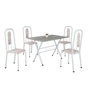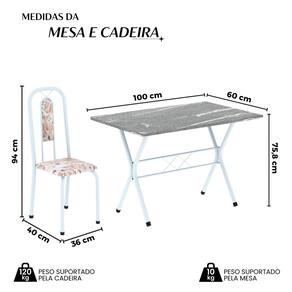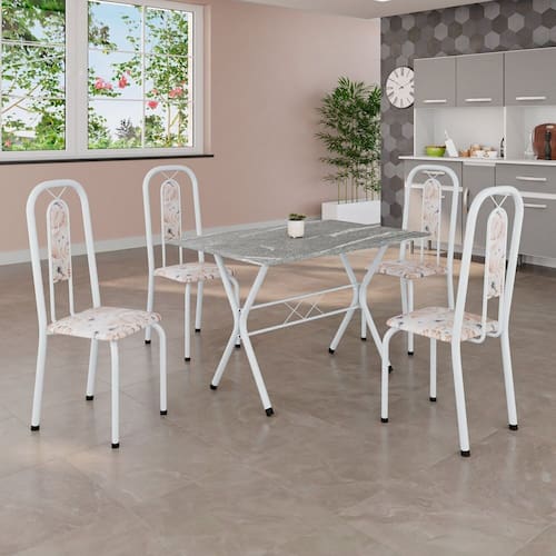 Conjunto de Mesa Tubular 100x60cm Tampo em Granito com 4 Cadeiras Lívia Botanic Bege / Branco