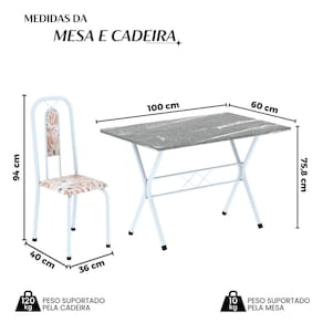 Medida da Mesa (A x L x P): 75,8 cm x 100 cm x 60 cm
