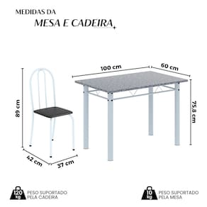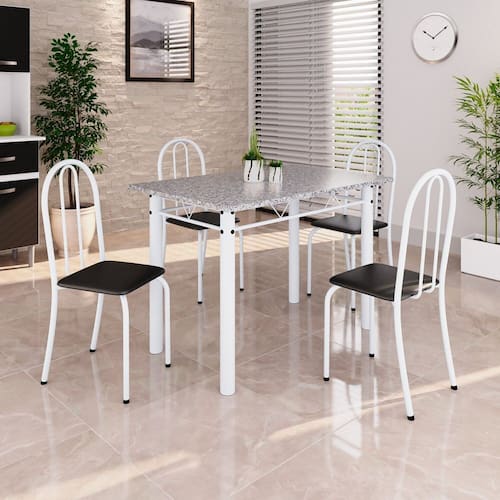 Quer deixar sua casa completa e prática? Uma dica bacana de como transformar o seu lar, deixando-o mais receptivo e bonito? Então você precisa de móveis indispensáveis para deixar seu lar muito mais aconchegante, receptivo e sempre disponível para receber a visita de amigos, familiares e convidados. Você vai se apaixonar por este incrível e moderno Conjunto de Mesa com 4 Cadeiras ANE B. Ideal para cozinha, ele é a melhor opção para completar o espaço que você desejar. Aproveite!! Medida da Mesa (A x L x P): 75,8 cm x 100 cm x 60 cm Peso da Mesa: 41,54 kg Mesa suporta até: 10.0000 Acabamento da Cadeira/Banco: Pintura Texturizada Acabamento da Mesa: Pintura Texturizada Ambiente Principal: Cozinha Cadeira/Banco estofada: Somente Assento Estofado Cadeira/Banco Estofada: Somente Assento Estofado Cadeira/Banco suporta até: 120.0000 codigo_ean: 7900288049254 Complexidade da Montagem: Baixa: pode ser montado por uma pessoa sozinha Cor: Preto / Branco Cor do Produto: Preto / Branco Cor Secundária: Cinza De Canto (Canto Alemão): Não Escala de Brilho: Brilhante Espessura do Tampo: 1,5 mm Estrutura do Assento: MDP Formato do Tampo: Retangular Itens Inclusos: 1 Mesa, 4 Cadeiras, 1 Kit Ferragens e 1 Manual de Montagem Linha ou Coleção: Ane B Manual de Montagem e Instalação: https://product-hub-prd.madeiramadeira.com.br/975532/documents/cc1faca1-b8bb-4688-ad27-11cf8422d6022645257352817375705415518.pdf Marca: Soma Móveis Material da Base da Mesa: Aço Material da Estrutura da Cadeira: Aço Material do Tampo: Granito Medida da Cadeira/Banco (A x L x P): 89 cm x 37 cm x 42 cm Medida do Tampo (L x C x E): 60 cm x 100 cm x 1,5 cm Mesa Extensível: Não Necessita Montagem: Sim Origem do Produto: Nacional Peso da Cadeira/Banco: 3 kg Possui Apoio Para os Pés: Não Quantidade de Cadeiras: 4 Quantidade de Lugares: 04 Recomendações de Uso, Manutenção e Limpeza: Não permitir que molhe os pés da base, usar um pano de tecido macio e seco, evitar detergentes, alvejantes e produtos químicos de limpeza; no tampo usar tecido macio levemente umedecido. Sistema de Montagem: Parafusos