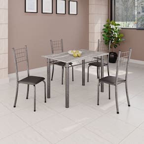 Quer deixar sua casa completa e prática? Uma dica bacana de como transformar o seu lar, deixando-o mais receptivo e bonito? Então você precisa de móveis indispensáveis para deixar seu lar muito mais aconchegante, receptivo e sempre disponível para receber a visita de amigos, familiares e convidados. Você vai se apaixonar por este incrível e moderno Conjunto de Mesa com 4 Cadeiras. Ideal para cozinha, ele é a melhor opção para completar o espaço que você desejar. Aproveite!!