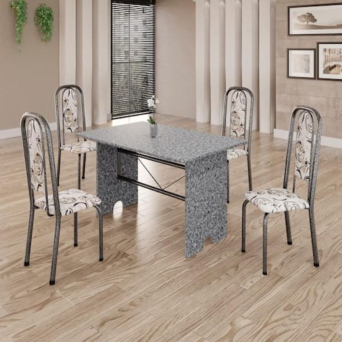 Quer deixar sua casa completa? Uma dica bacana de como transformar o seu lar, deixando-o mais receptivo e bonito?Você vai se apaixonar por este incrível Conjunto de Mesa com 4 Cadeiras Letícia.