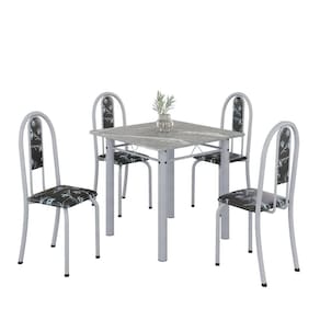 Produto: Conjunto de Mesa Tubular 4 Cadeiras 70x70cm Mart Perola com Tampo em Granito Topázio Isabel 030 - Tudo de Móveis Cor: Preto Floral