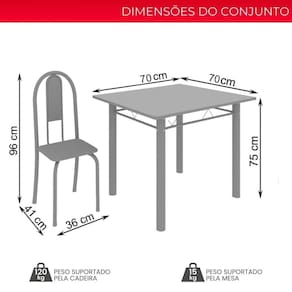 Medidas da Mesa (A x L x P): 75 cm x 70 cm x 70 cm