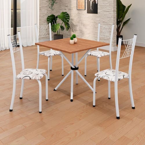 Quer deixar sua casa completa e prática? Uma dica bacana de como transformar o seu lar, deixando-o mais receptivo e bonito? Então você precisa de móveis indispensáveis para deixar seu lar muito mais aconchegante, receptivo e sempre disponível para receber a visita de amigos, familiares e convidados. Você vai se apaixonar por este incrível e moderno Conjunto de Mesa com 4 Cadeiras. Ideal para cozinha, ele é a melhor opção para completar o espaço que você desejar. Aproveite!! Medida da Mesa (A x L x P): 75,8 cm x 70 cm x 70 cm Peso da Mesa: 6,78 kg Mesa suporta até: 10.0000 Acabamento da Cadeira/Banco: Pintura Texturizada Acabamento da Mesa: Pintura Texturizada Ambiente Principal: Cozinha Cadeira/Banco Estofada: Somente Assento Estofado Cadeira/Banco estofada: Somente Assento Estofado Cadeira/Banco suporta até: 120.0000 codigo_ean: 7900288124432 Complexidade da Montagem: Baixa: pode ser montado por uma pessoa sozinha Cor: Arabesco/ Branco Cor do Produto: Arabesco/ Branco Cor Secundária: Bege De Canto (Canto Alemão): Não Escala de Brilho: Semi-Brilho Espessura do Tampo: 1,5 mm Estrutura do Assento: MDP Formato do Tampo: Quadrado Itens Inclusos: 1 Mesa,4 Cadeiras , Kit Ferragens e Manual de Montagem Linha ou Coleção: Sara Manual de Montagem e Instalação: https://product-hub-prd.madeiramadeira.com.br/871621045/documents/73742861-a1ee-4e78-a854-2fbdea18f47b42716616352817406035611403.pdf Marca: Soma Móveis Material da Base da Mesa: Aço Material da Estrutura da Cadeira: Aço Material do Tampo: MDF Medida da Cadeira/Banco (A x L x P): 95 cm x 37 cm x 40 cm Medida do Tampo (L x C x E): 70cm x 70cm x 1,5cm Mesa Extensível: Não Necessita Montagem: Sim Origem do Produto: Nacional Peso da Cadeira/Banco: 2,94 kg Possui Apoio Para os Pés: Não Quantidade de Cadeiras: 4 Quantidade de Lugares: 04 Recomendações de Uso, Manutenção e Limpeza: Não permitir que molhe os pés da base, usar um pano de tecido macio e seco, evitar detergentes, alvejantes e produtos químicos de limpeza; no tampo usar tecido macio levemente umedecido. Sistema de Montagem: Parafusos