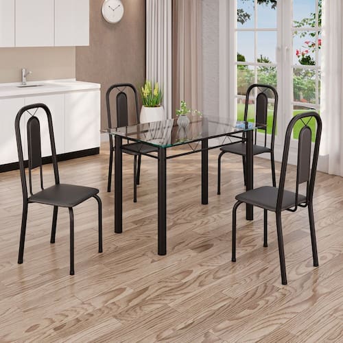 Conjunto de Mesa Tubular com 4 Cadeiras Lívia Preto