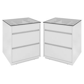 Feitos em MDP 25/15mm. Possui 3 gavetas com corrediças telescópicas possibilitando a abertura total da gaveta com deslizamento suave preciso e resistente e tampo feito de vidro.