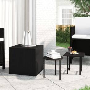 Este conjunto de mesa lateral anima qualquer espaço de estar com sua atmosfera moderna e versatilidade. Tem três peças exclusivas — um pufe, uma mesa quadrada e uma mesa redonda — que combinam funcionalidade com design moderno, tornando-o ideal para vários locais, seja um pátio ensolarado ou um recanto interno confortável. O elegante acabamento preto de poliéster rattan fica lindo, além de ser durável e prático para o uso diário.