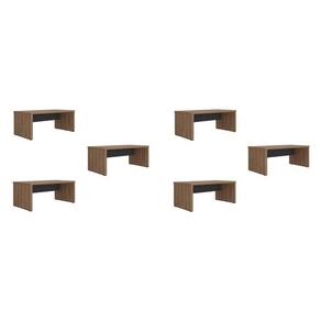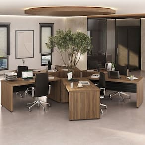 As mesas contam com longarinas elegantes e sapatas reguláveis, permitindo ajuste de altura para compensar desníveis do piso, oferecendo estabilidade e conforto. Uma solução completa para quem busca organização, estilo e funcionalidade em um único conjunto. Suporta Até (kg): 45 kg Altura do Conjunto: 75.0 cm Ambiente: null Ambiente Principal: Escritório Cor: Nogal/Preto Informação Complementar: 6x Mesa Elegante para Escritório Executivo em Tamburato 158,5cm Nogal/Preto Largura: 158,5 cm Altura: 75 cm Peso: 57,5 kg Profundidade: 80 cm Necessita Montagem: Sim