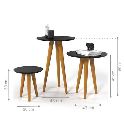 Conjunto De Mesas Pés Palito Savannah Preto O Conjunto de Mesas é ideal para você e para sua sala! Pés em Madeira Maciça Pinus
