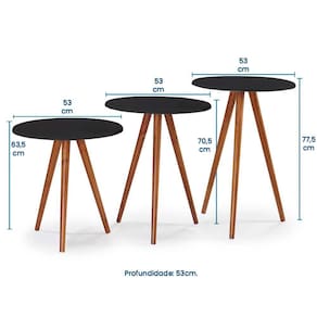 Conjunto de Mesas Tripé Pé Palito Hannover 900+901+902 - Preto/Imbuia Glazer - Preto