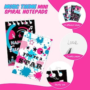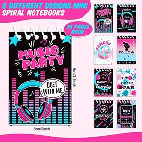 Mini blocos de notas musicais de 24 peças, conjunto de notas temáticas de mídia social, lembrancinhas de aniversário, notas em espiral, notas em espiral, prêmios de festa em massa para adolescentes, crianças, sacolas de presente de aniversário, enchimentos, material escolar (8 estilos)