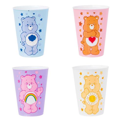 Silver Buffalo Ursos Carinhosos com Urso Mal-humorado, Tenderheart Bear, Cheer Bear e Funshine Bear, pacote com 4 mini copos de plástico, 42,5 g