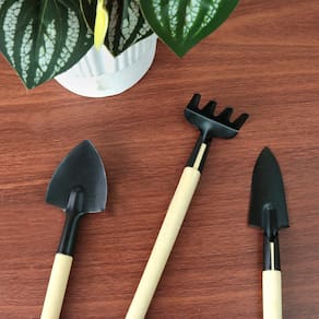 Esse conjunto de mini ferramentas de metal são projetados para serem leves duráveis e funcionais, tornando-as ideais para uso em hortas urbanas, vasos de plantas, jardins de contêineres ou qualquer outro espaço de jardinagem pequeno. Ideal para auxiliar em tarefas de jardinagem em espaços pequenos e delicados. Composto por 03 ferramentas: mini rastelo, mini pé larga e mini pá estreita.