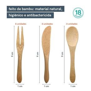 Esse conjunto é composto por 18 peças: 6 unidades de MINI COLHERES DE BAMBU - OIKOS Comprimento: 9 cm Largura: 1 cm