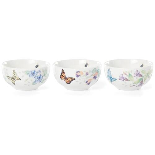 Este conjunto de mini tigelas de três peças apresenta o encantador padrão Butterfly Meadow, com borboletas e flores delicadas em seu exterior, além de uma pequena abelha escondida no interior, trazendo um toque ainda mais especial e charmoso. Feito de porcelana fina, o conjunto é prático, podendo ser lavado na máquina de lavar louça e utilizado no micro-ondas.