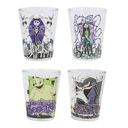 - Conjunto de mini vidro: nosso conjunto de minicopos de 4 peças contém 30 ml de sua bebida favorita em cada copo e apresenta as imagens do Rei Abóbora Jack Skellington, sua noiva morta-viva Sally, o adorável e perfeito Zero e o horrível Oogie Boogie
