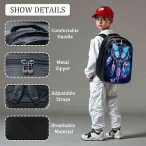 - Material: o tecido de poliéster leve não apenas torna a mochila leve, mas também muito durável. O processo de costura múltipla e o zíper suave garantem a durabilidade da mochila, o que é muito adequado para o uso diário das crianças. O design respirável e confortável e as alças ajustáveis podem reduzir efetivamente a carga nas costas. O design da alça superior também é muito conveniente, facilitando o levantamento da mochila