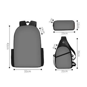 Descrição do produto: Tamanho da mochila: 32 x 14 x 42 cm Tamanho da bolsa de peito: 21 x 8 x 35 cm Tamanho da bolsa de lápis: 23 x 7 x 12 cm Peso da bolsa de peito: 170 g Peso da bolsa de lápis: 36 g Material: Oxford Cor: igual à primeira foto Embalagem: 1 x mochila 1 x bolsa de peito 1 x bolsa de lápis Características: 1. Nossa mochila oferece muito espaço para material escolar, roupas, brinquedos ou acessórios esportivos. Se você quiser usá-la como mochila escolar ou como mala de viagem, há um compartimento principal de grande capacidade que pode acomodar facilmente livros, lancheira, brinquedos ou tênis. 2. Nossas mochilas são projetadas para crianças grandes e estudantes. Seus filhos gostarão de levá-las a qualquer lugar e se destacar da multidão. 3. Alças de ombro humanizadas: alças ergonômicas macias e mais largas são confortáveis de usar, e as alças são ajustáveis e têm a função de permeabilidade ao ar, absorção de suor e redução de pressão, o que proporciona aos seus filhos uma felicidade e infância saudável. 4. Multifuncional: pode ser usada como mochila escolar, bolsa de viagem, mochila de uso diário, mochila casual. Perfeito para estudos escolares, acampamentos, caminhadas, piquenique, etc. Adequado para creches, pré-escolas, jardins de infância, ensino médio, viagens, etc.