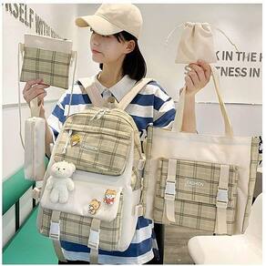O pacote inclui: 1 mochila (tamanho 11,8 x 7,9 x 16,1 polegadas), 1 estojo de lápis, 1 lancheira, 1 sacola, 1 pingente de urso. ALTA QUALIDADE: Feito de lona leve e de alta qualidade, forte, durável e à prova d'água. Costura forte e tiras firmes, duráveis o suficiente para grande capacidade. Com zíper de metal de alta qualidade, você pode abrir e fechar a bolsa suavemente. Grande capacidade: A mochila e a bolsa fornecem aproximadamente 30L de capacidade, o que é grande o suficiente para guardar seus pertences diários. Você pode colocar seu laptop, livros e outros acessórios com você. Estojo para lápis: o design reto permite um melhor uso do espaço interno, grande o suficiente para guardar canetas, lápis e outros materiais para a escola ou o escritório. Também pode ser para outros fins, como carteiras de viagem, malas de viagem, bolsas de maquiagem. Presente ideal: o conjunto de mochila é um presente ideal para todos, eles vão adorar