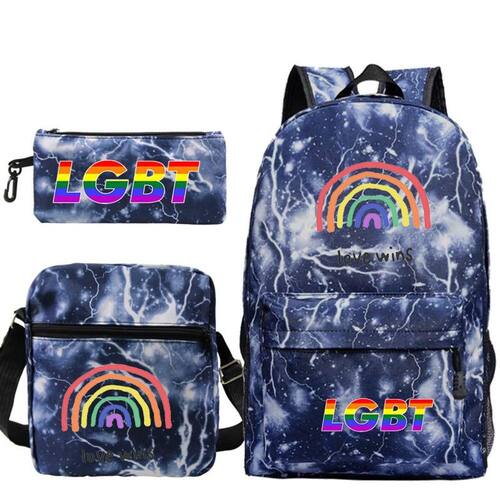 Conjunto de mochilas LGBT Satchel Polyester Lover Casual, 3 peças