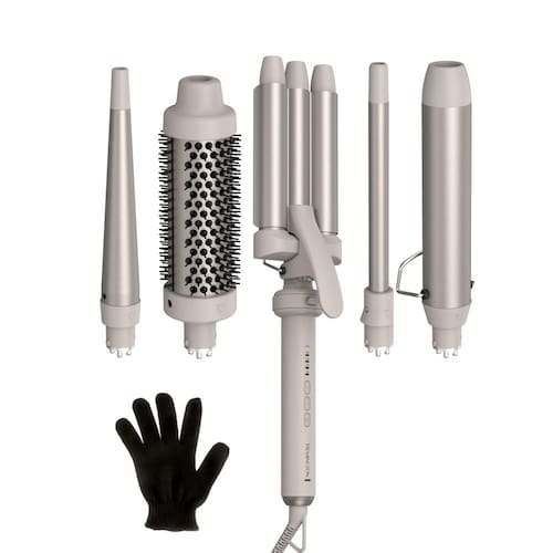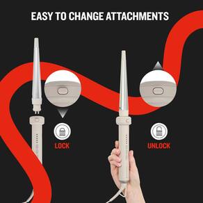 - Cinco acessórios cerâmicos intercambiáveis para penteados versáteis, incluindo cachos apertados, cachos soltos, cachos naturais, ondas suaves e volume.