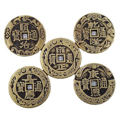 Material: cobre Peso: 60 g Tamanho: 3,2 cm Embalagem: 5 moedas Design autêntico da dinastia Qing — apresenta inscrições tradicionais da era dos cinco imperadores, simbolizando riqueza e proteção na cultura do Feng Shui. Artesanato em latão premium — Feito de liga de cobre durável com acabamento dourado antigo e detalhes intrincados para uma aparência vintage realista. Símbolo de fortuna e harmonia — acredita-se que atrai prosperidade, afasta a negatividade e traz equilíbrio a residências, escritórios ou coleções pessoais. Tamanho decorativo compacto — Cada moeda de 3,2 cm é espessada para uma sensação mais substancial, perfeita para exibição ou arranjos de Feng Shui. Peça cultural colecionável — Ideal para colecionadores de história chinesa, artesanato tradicional e moedas decorativas em estilo vintage.