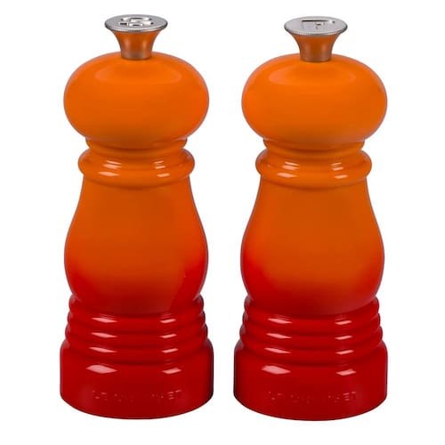 Le Creuset Conjunto pequeno de moedor de sal e pimenta, 12,7 cm x 5 cm cada, chama - Moedor de cerâmica - Lavar apenas à mão - O conjunto inclui moedor de sal e pimenta - Tamanho: 12,7 cm x 5 cm - Garantia limitada de 10 anos