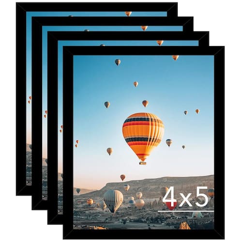 O pacote inclui: 4 pacotes de molduras pretas 4x5. TAMANHO DA MOLDURA: A moldura preta serve para fotos 4x5, simples e elegante. A tela de abertura da moldura será 0,5 polegadas menor que a foto para melhor segurá-la em vez de apresentar um defeito.