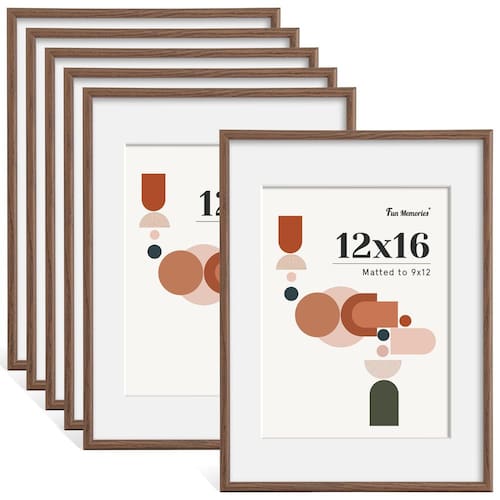 Fun Memories Conjunto de 6 porta-retratos de 30 x 40,6 cm, tela 23,5 x 30,5 cm com tapete ou sem tapete, acrílico HD, tela de parede ou mesa, gancho de parede incluído, nogueira - Design clássico: molduras Fun Memories com seu design curvo elegante e discreto e clássico, você poderá aprimorar suas fotos facilmente e transformá-las em verdadeiras obras de arte. Essas molduras fazem com que qualquer moldura seja profissional sem frear um banco para uma moldura personalizada - Enquadramento fácil: os tapetes removíveis sem ácido Fun Memories tornam essas molduras ainda mais adaptáveis: esta moldura é fosca para caber em uma imagem de 21 x 30 cm e mede 30 x 40 cm com a placa de tapete removida. Além disso, esta moldura de 30 x 40 oferece um design versátil que pode ser exibido tanto na horizontal quanto na vertical. Dê à sua arte um toque profissional - Extremamente segura e durável: a moldura Fun Memories com tapete é feita de plástico superior com frente de plexiglass, leve, mas firme. A placa de montagem é de madeira MDF durável. Resistente, durável e antiqueda, pode proteger sua foto contra poeira, umidade ou danos por insetos, mantendo-a nova por anos - FÁCIL DE PENDURAR: cabides dente de serra na parte de trás da moldura e gancho de parede fornecidos permitem montagem rápida e fácil em exibição retrato ou paisagem. A moldura vem com abas giratórias na parte de trás para facilitar a adição e remoção de fotos. Refrescar suas memórias é uma brisa — apenas um toque e um clique, e seu espaço é revitalizado - Presente perfeito: as molduras Fun Memories bem embaladas e de alta qualidade são a melhor escolha de presente para qualquer ocasião, especialmente durante épocas festivas como Natal, aniversário, formatura, casamento, chá de bebê, inauguração de casa. Se você tiver alguma dúvida, e forneceremos o melhor serviço para atender às suas necessidades