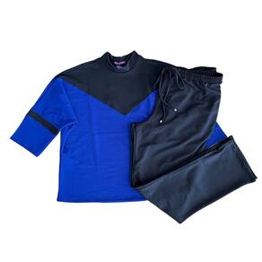 (G1) Blusa: Busto 132cm, Manga 63cm, Comprimento 65cm/ Calça: Cós 104-144cm, Comprimento 110cm.