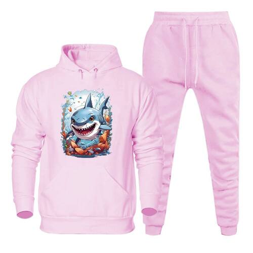 Conjunto de Moletom Estampado Blusa Canguru Com Capuz Ajustavel e Calça Basica Com Bolsos Laterais - Rosa - M