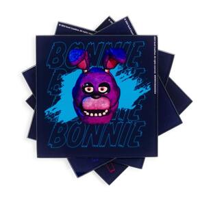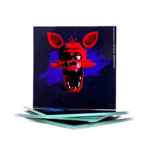 - IMAGENS ICÔNICAS DE PERSONAGENS: Essas montanhas-russas de vidro Five Nights at Freddy's apresentam Freddy Fazbear, Bonnie, Chica e Foxy, cada uma exibida com seus rostos. A arte do personagem tem como pano de fundo seus nomes em um padrão de repetição ousado.