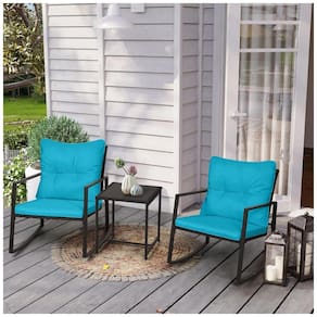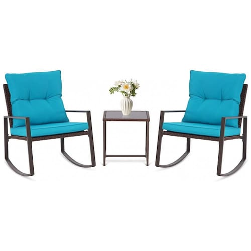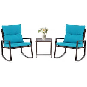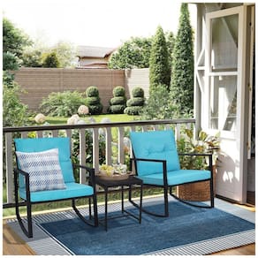 Conjunto de Móveis de Vime Preto SUNCROWN para Área Externa: 3 Peças com Cadeiras de Balanço, Conjunto de Conversação com Mesa de Centro de - Azul Claro