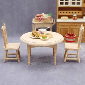 Dimensões: Mesa: 11,5 x 11,5 x 7 cm Cadeira: 5,5 x 4 x 9,6 cm (comprimento, largura e altura) Material: madeira Peso: 1 mesa + 2 cadeiras 200 g 1 mesa 130 g 1 cadeira 30 g Conjunto de jantar em miniatura: este conjunto inclui uma mesa de jantar redonda de madeira lindamente trabalhada e duas cadeiras, perfeitas para sua sala de jantar de casa de bonecas em escala 1:12. Construção em madeira de alta qualidade: feito de madeira durável, este conjunto de móveis é perfeito para pintura e personalização DIY, permitindo que você crie um visual único para sua casa de bonecas. Ideal para brincadeiras de fingir: ótimo para brincadeiras criativas, este conjunto de jantar foi projetado para aprimorar a narrativa e a dramatização de crianças, incentivando a criatividade e a diversão. Perfeito para casas de bonecas em escala 1:12: projetado especificamente para casas de bonecas em escala 1:12, este conjunto se encaixa perfeitamente em sua coleção de minimóveis. Nota de segurança importante: Este é um modelo de brinquedo para bonecas e não se destina ao uso humano. Por favor, mantenha-se afastado de crianças pequenas para evitar engolir ou ferir acidentalmente.