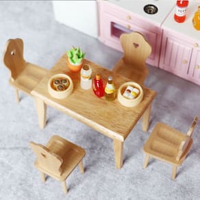 Dimensões: Mesa: comprimento 10,3 cm x largura 6,3 cm x altura 6,5 cm; cadeira: comprimento 3,8 cm x largura 3,9 cm x altura 8,5 cm Material: madeira Peso: 140 g Design elegante em cor de carvalho: este conjunto em miniatura de 5 peças inclui uma mesa de jantar redonda de madeira com quatro cadeiras combinando em uma cor de carvalho natural, perfeita para criar uma área de jantar aconchegante em sua casa de bonecas. Construção durável em madeira: feito de madeira de alta qualidade, este conjunto de móveis é feito para durar e adiciona um toque de charme rústico às suas cenas em miniatura. Ideal para casas de bonecas na escala 1:12: Perfeitamente dimensionado para casas de bonecas na escala 1:12, este conjunto de móveis é ideal para uso em cozinhas de casas de bonecas, salas de jantar ou teatros. Não é um brinquedo para crianças: observe que este é um modelo em miniatura destinado a colecionadores adultos ou crianças mais velhas e deve ser mantido fora do alcance de crianças pequenas devido às peças pequenas. Perfeito para brincar de fingir: um ótimo complemento para brincar de fingir, ajudando as crianças a desenvolverem a criatividade ao mesmo tempo em que aumentam sua coleção de casas de bonecas.