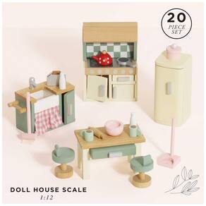 Conjunto de Brinquedo de Madeira Colorido e Educacional: Este conjunto de cozinha completo, com móveis e acessórios para casa de bonecas, é perfeito para o seu pequeno chef! Perfeitamente dimensionado para caber em qualquer uma das casas de bonecas de madeira Le Toy Van, proporciona horas de diversão e aprendizado.